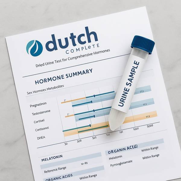 Comprehensive Hormone test. I use the DUTCH test (Dried Urine Test for Comprehensive Hormones). This at home test measures a wide range of hormones and their metabolites. It looks at sex hormones (estrogens, progesterone and androgens), cortisol, and their metabolites, as well as other biomarkers like melatonin and organic acids. This can be helpful to identify imbalances, inefficient breakdown or processing of hormones, proper stress response, gut health and oxidative stress. Our hormones affect every body system and are directly affected by the health of our gut and overall inflammation in the body. This can help guide overall treatment strategies for long term health.